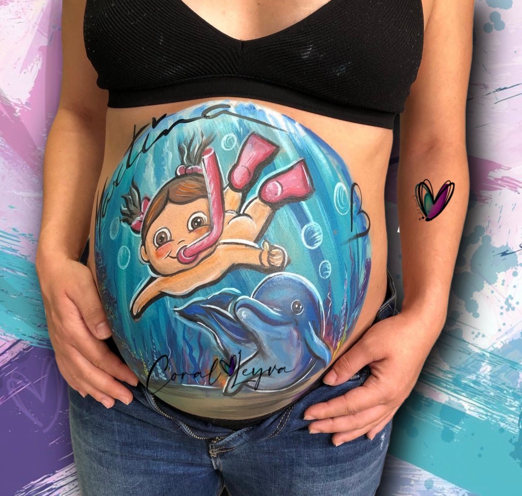 La barriga de la mamá embarazada se convierte en un lienzo perfecto en el que poder plasmar los sueños, los deseos y las ilusiones de una nueva madre, adaptando la pintura a sus gustos y personalizándola.